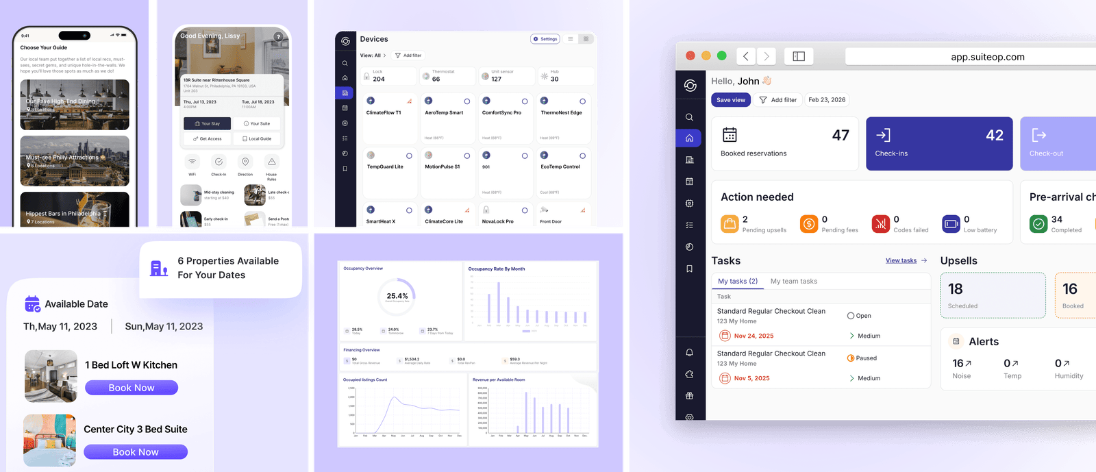 I designed the full SuiteOp experience — including the Web SaaS dashboard, Guest Portal, automation flows, smart device management, and the iOS app.